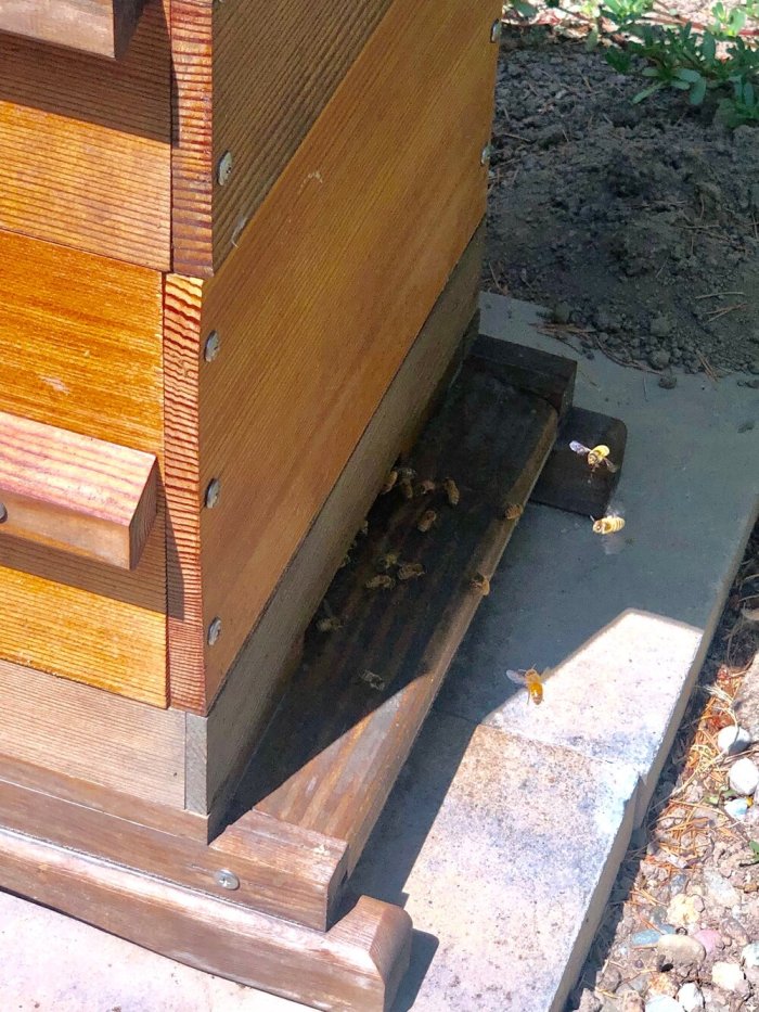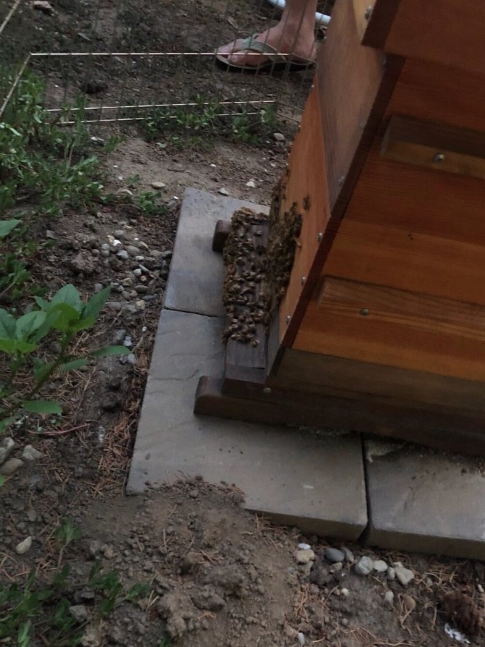 Here you can see the bees starting to wrap around the front of the hive. Not necessarily good.
