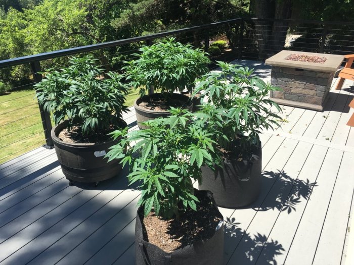 By mid-June, I had all of the plants transplanted in large 20 gallon containers and they were growing insanely fast. Fertilizing started right about this time and I was amazed at how green these suckers look like.