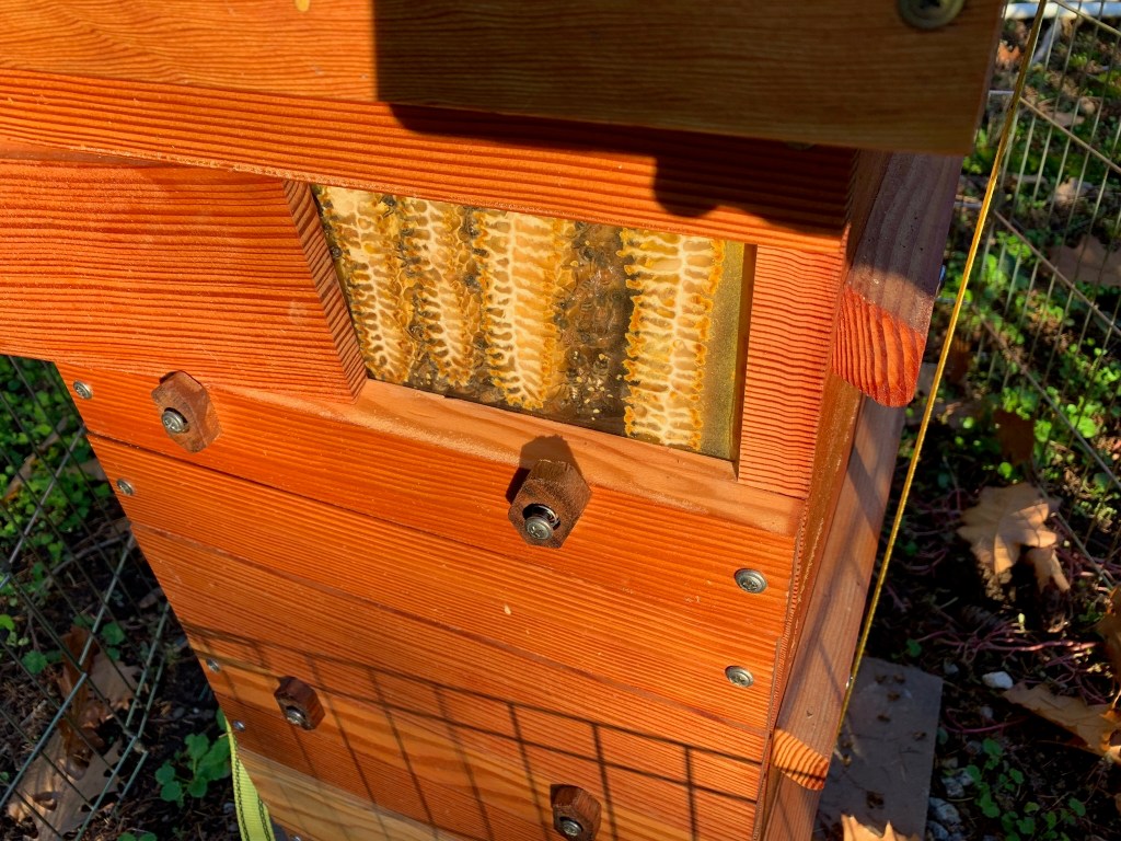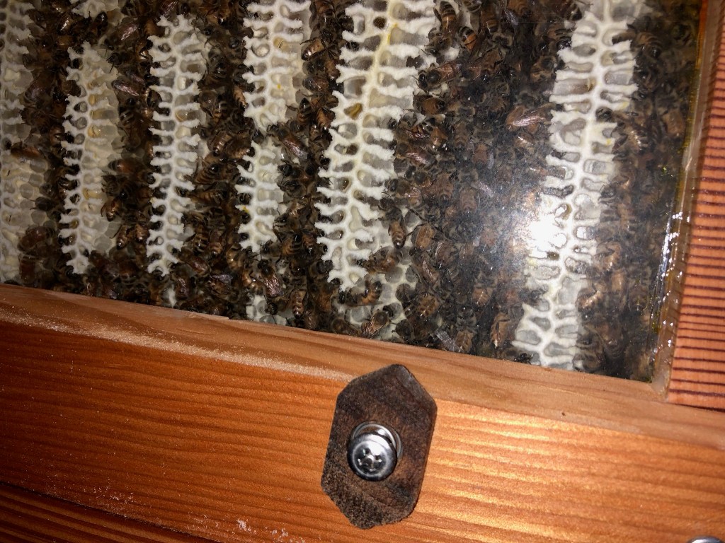 We had a great time watching the hive grow and learning about managing bees. What was even cooler was being able to see inside of the hive via the plexiglass windows we had. We could see the hive itself growing at an incredible pace as well as see the troubles hives have with yellow jackets and other predatory insects trying to take out our hive. It was a tough year with yellow jackets but our bees did a great job keeping everybody honest.